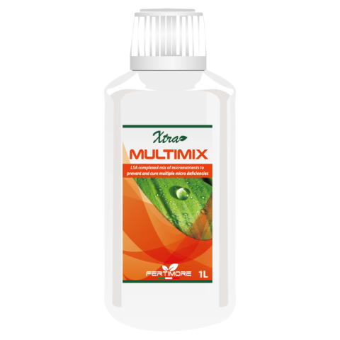 XTRA MULTIMIX is a fast-acting, highly soluble, homogeneously spread and quickly absorbed liquid formula with high content of complexed mix of boron (B), copper (Cu), iron (Fe), manganese (Mn), Molybdenum (Mo) and zinc (Zn):